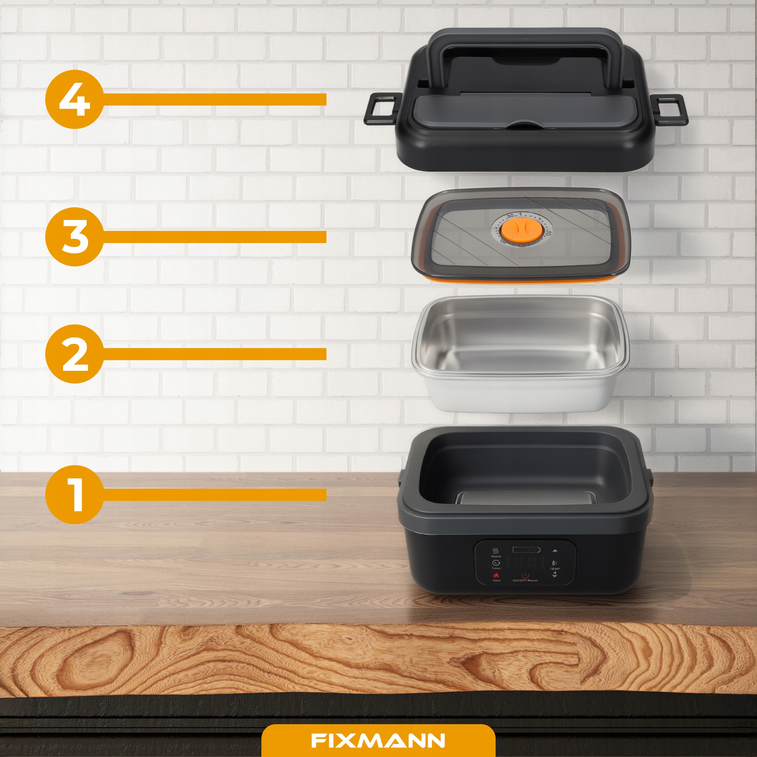 Позаботьтесь о комфорте и вкусе своих блюд независимо от места — с нашим электрическим ланч-боксом объемом 1 л вы сможете приготовить и съесть теплый ароматный ужин, где бы вы ни находились. Прочная и герметичная конструкция сочетает в себе легкий и прочный пластик с гигиеничной и устойчивой к коррозии нержавеющей сталью 304. Внутри имеется съемная стальная вставка, облегчающая мытье и сервировку посуды.