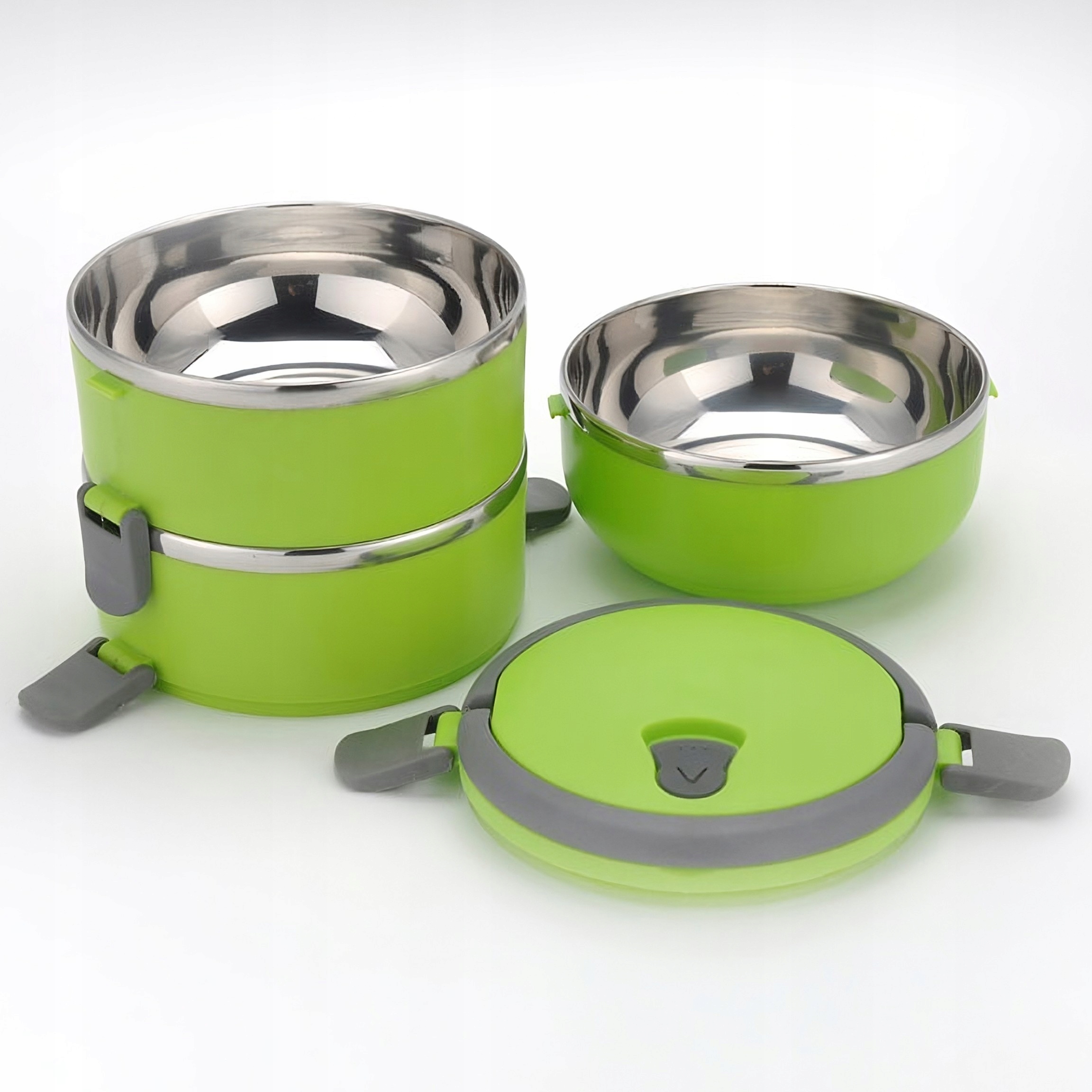 - Зеленый термос, состоящий из трех отдельных контейнеров.