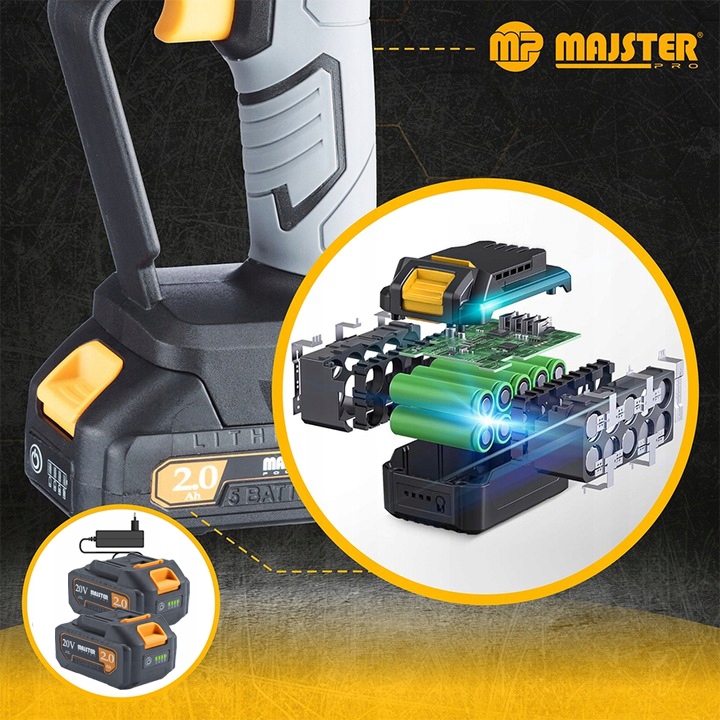 ✅ 2 батареи 20 В 2.0AH длительный срок До 55 минут непрерывной работы над одной батареей!