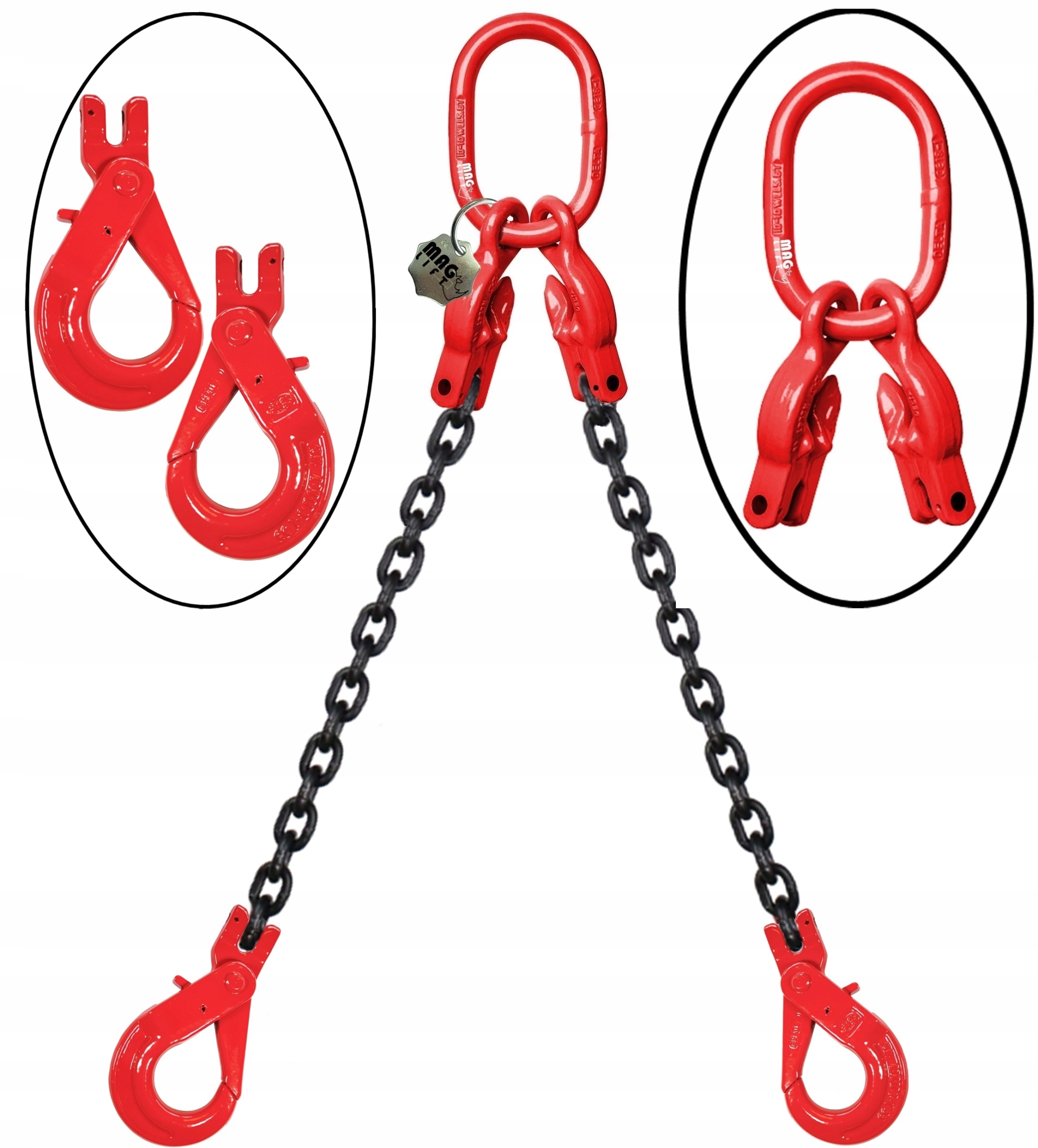 ИСПОЛНЕНИЕ: 2-ветвевой цепной строп, изготовленный в соответствии с PN-EN 818-4 из сертифицированных компонентов и строповой цепи с пределом прочности 800 Н/мм2 /GR8/ и отвечающий требованиям Директивы по машинному оборудованию 2006/42/EC, издание май 2006 г.