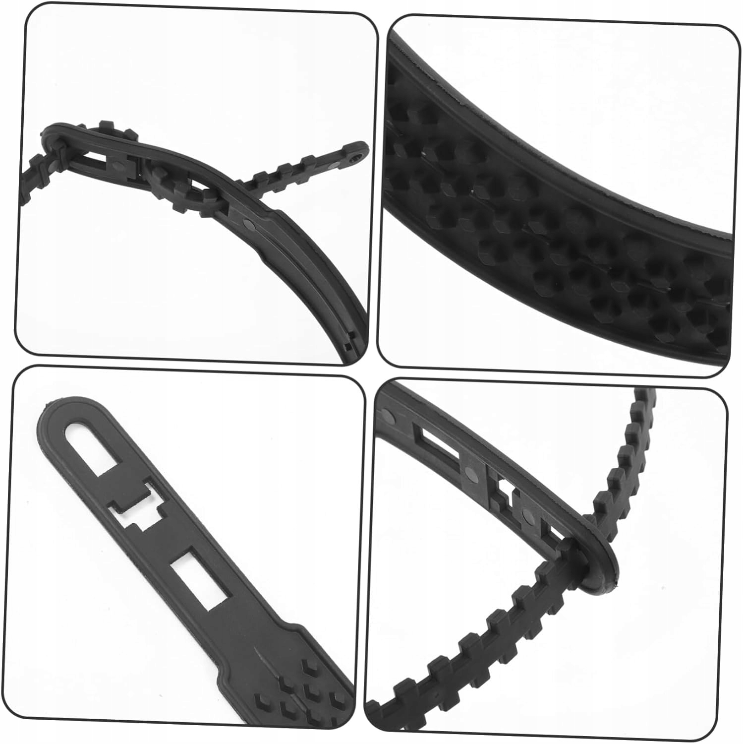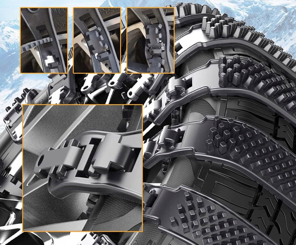 - ✅ Универсальный размер - цепи противоскольжения подходят к большинству шин благодаря удобному креплению, позволяющему регулировать размер.