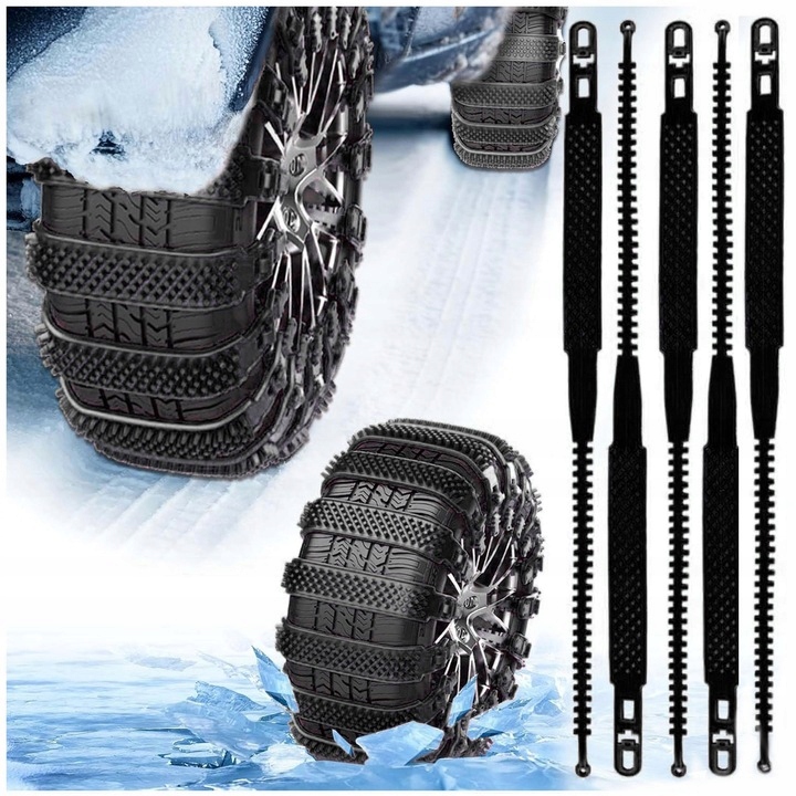 Изделие является прекрасной заменой классическим металлическим цепям, поскольку его установка намного проще, быстрее и удобнее. Комплект универсален, подходит к большинству бывших в употреблении шин, что делает его идеальным для любой сложной ситуации.