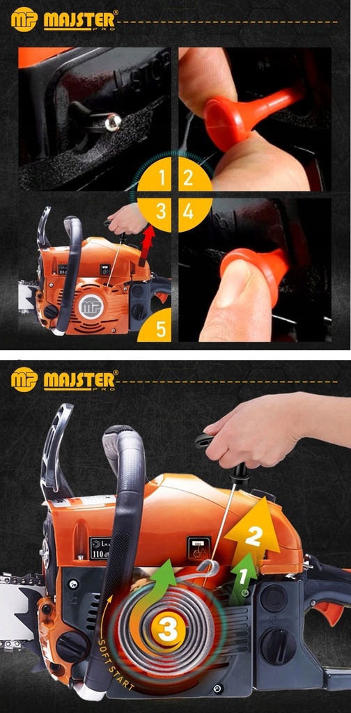 ✴ обеспечивает быстрый и очень простой запуск пилы, даже при низких температурах. Нет больше проблем с пилой холодной стрельбы.