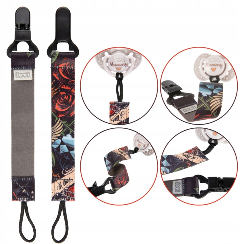 Универсальная веревка на конце ленты позволяет прикрепить ее к любой соске с ручкой, а на другом - безопасная клипса. Конец позволяет прикрепить ленту к одежде вашего ребенка. Лента доступна в нескольких цветах, поэтому вы легко сможете создать стильный комплект с другими товарами из коллекции LOVI.
