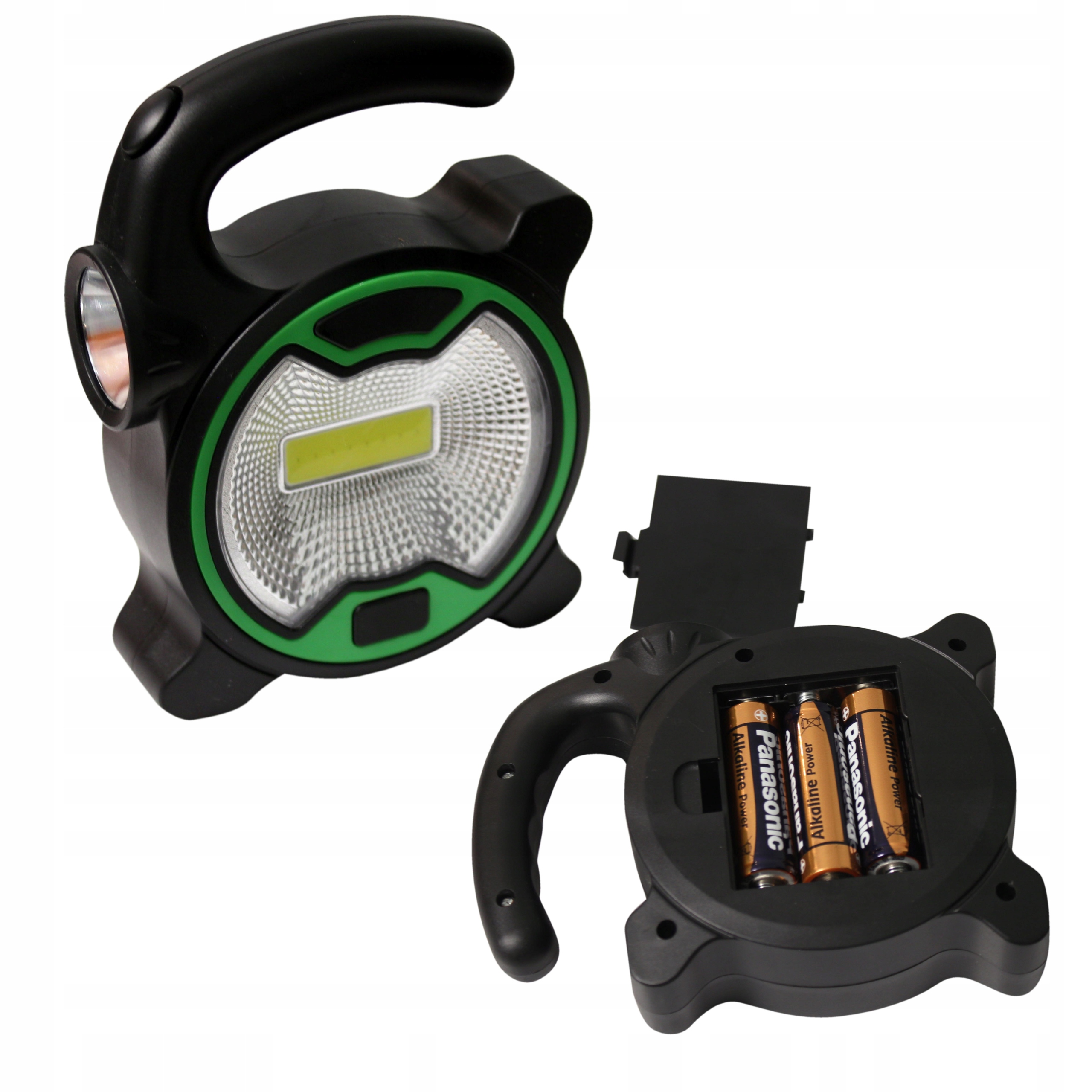 Удобный фонарь на батарейках с дополнительным боковым фонарем COB. Идеально подходит для мастерских, кемпинга или дома.