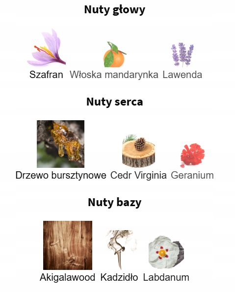 Первый контакт с Мусамом перемещает нас в далекие земли, где традиция переплетается с современностью. Примечания - шафран, итальянский мандарин и лаванда - создают гармоничное введение, полное свежести и элегантности. Szafran, известный своим интенсивным, слегка острым ароматическим, добавляет композицию тайны. Итальянский мандарин приносит в композицию радостную, цитрусовую ноту, которая осветляет чувства. Лаванда, в свою очередь, вводит тонкий, успокаивающий акцент, который уравновешивает интенсивность оставшихся ингредиентов.