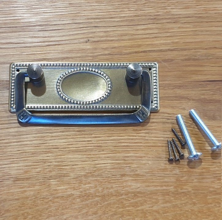- Фурнитура из прессованной латуни горизонтальная, с ручкой, без отверстия для ключа