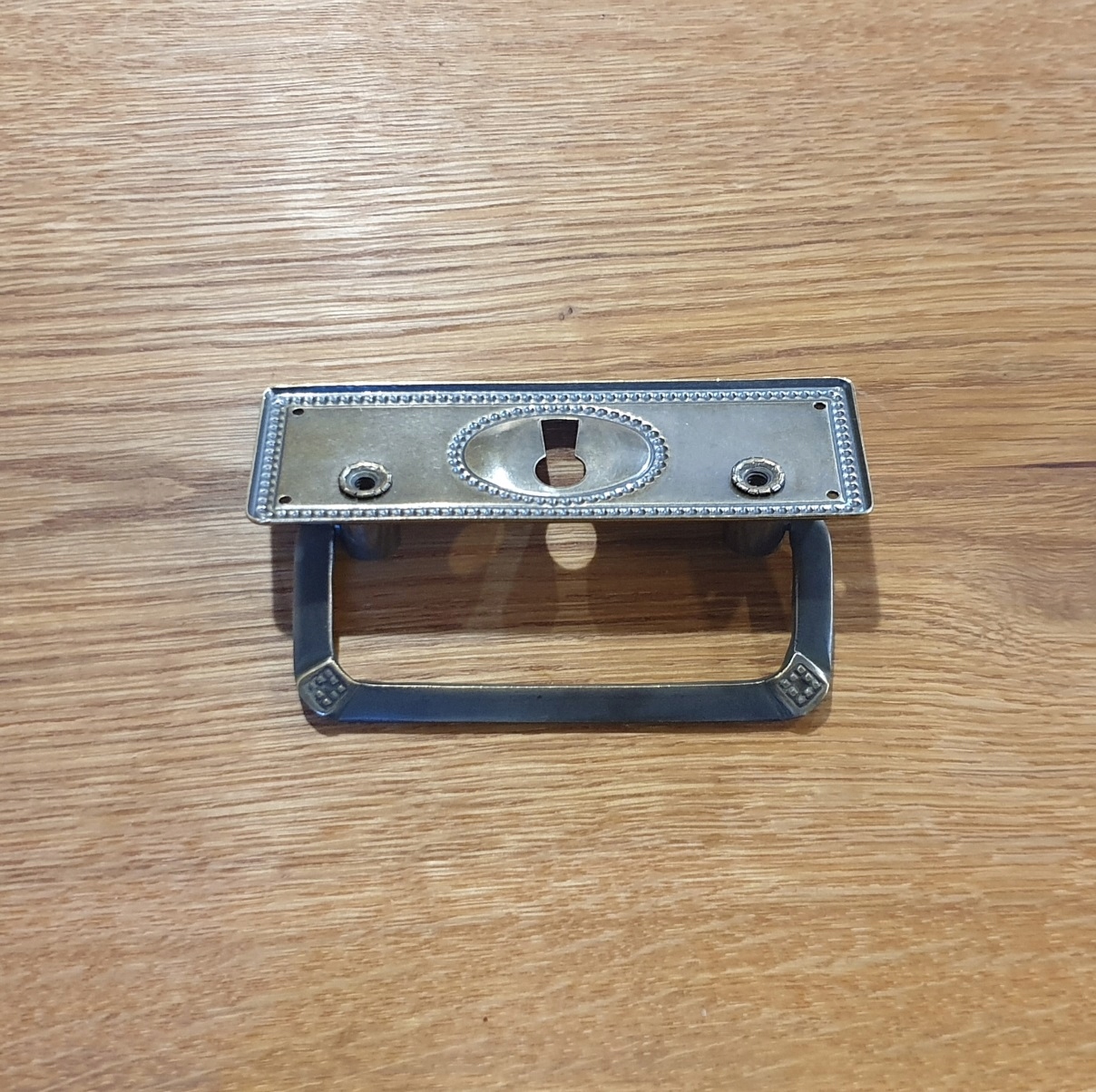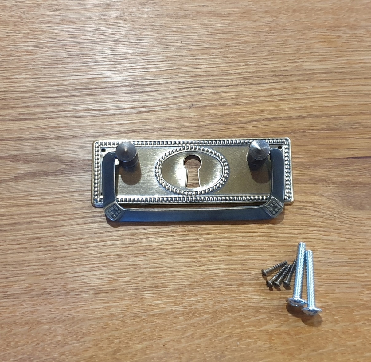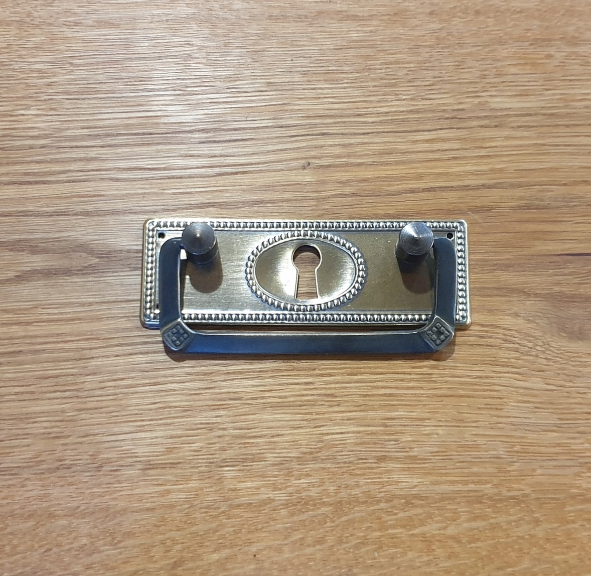- Фурнитура из латуни с тиснением горизонтальная, с ручкой, с отверстием для ключа