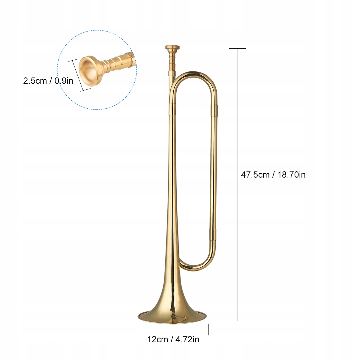 Латунный кавалерийский рожок C Bugle Call Possessed с мундштуком, музыкальный инструмент для начинающих, школьный оркестр, военный оркестр (18,7 дюйма)