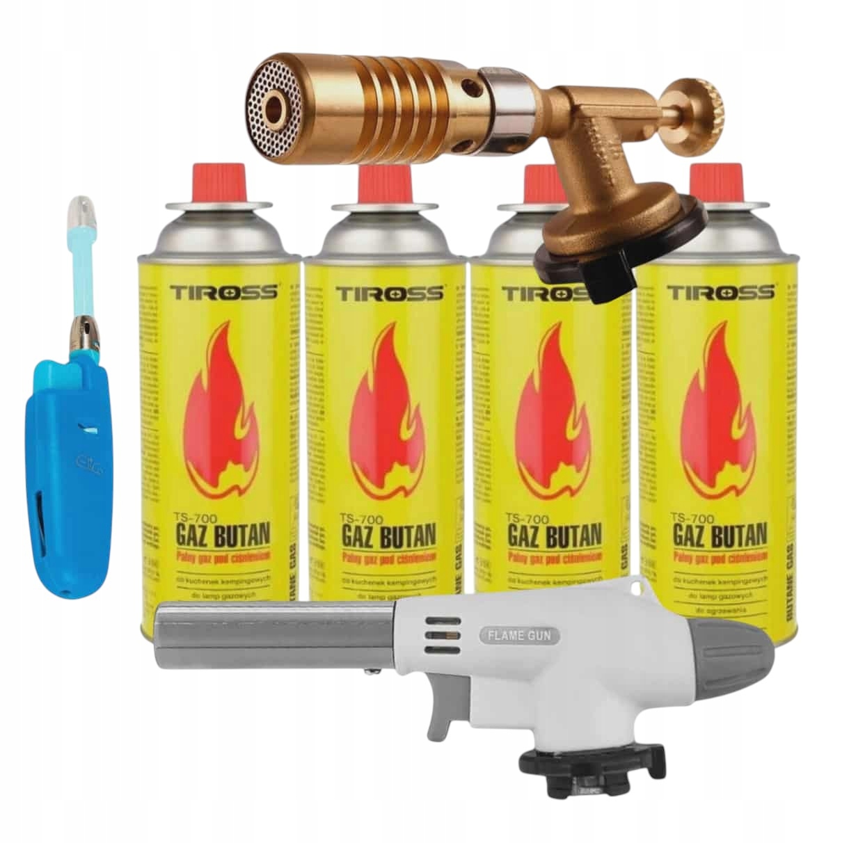 ЛАТУНЬ + КЕРАМИЧЕСКАЯ ГАЗОВАЯ ГОРЕЛКА 4 ГАЗОВЫХ КАРТРИДЖА + ЗАЖИГАЛКА