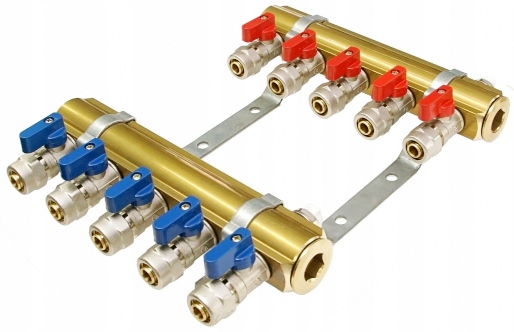 медный коллектор. Он предназначен для использования в центральном отоплении. Верхний и нижний луч, оснащенный мини -1/2 "клапанами, интегрированными с разъемом PEX 16. Разъем позволяет очень простое соединение PEX/AL/PEX Ø16.