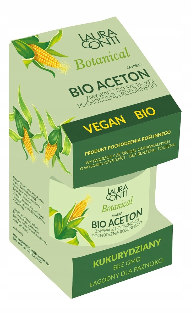 LAURA CONTI Botanical Bio Acetone — средство для снятия лака на растительной основе на основе органического ацетона. Не содержит бензола и толуола. Без ГМО. Биоацетон получают в результате ферментации растительных сахаров кукурузы в присутствии бактерий Clostridium. Сам процесс был впервые описан более 100 лет назад. Этот метод использовался во многих странах, включая Англию, США и Канаду. Однако на смену ей пришли химическая и нефтехимическая промышленность. Однако к нему стоит вернуться, поскольку он не производит никаких опасных побочных продуктов. Формула ремувера обогащена аргановым маслом и ланолином. Жидкость эффективно удаляет классический лак для ногтей, а также регенерирует сухие, ломкие и расслаивающиеся ногти, увлажняет и смягчает кутикулу, поддерживает липидный слой кожи.