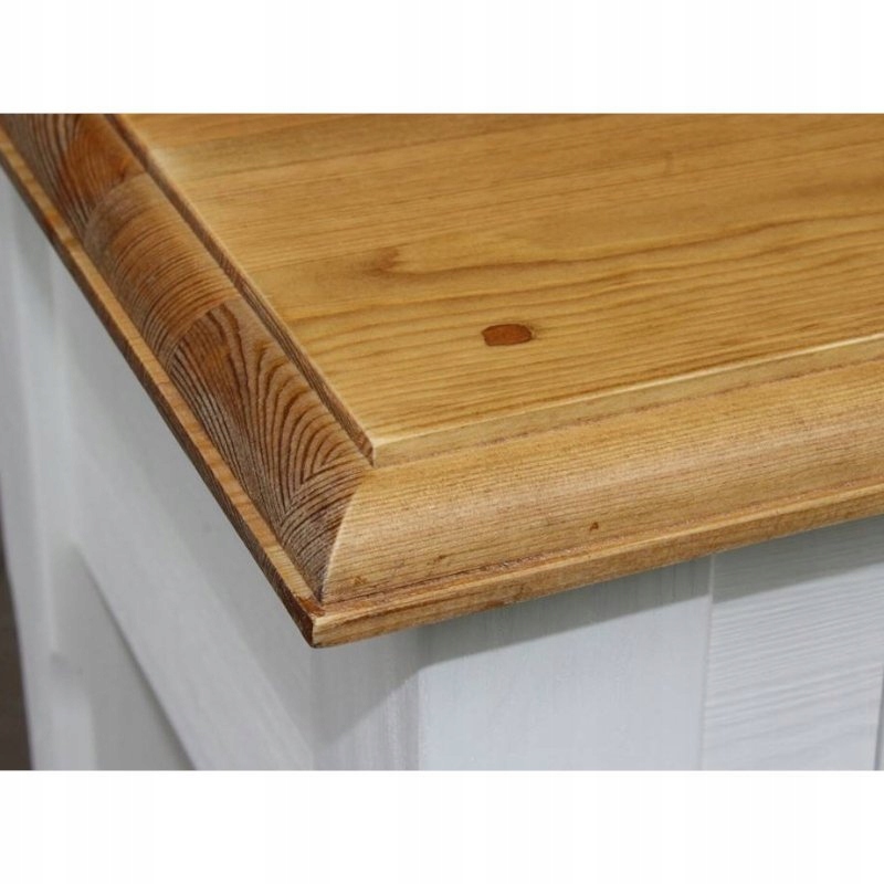 Комод полностью изготовлен из массива сосны. Благодаря сочетанию классического деревенского стиля с современными цветами, мебель становится одновременно очень современной.