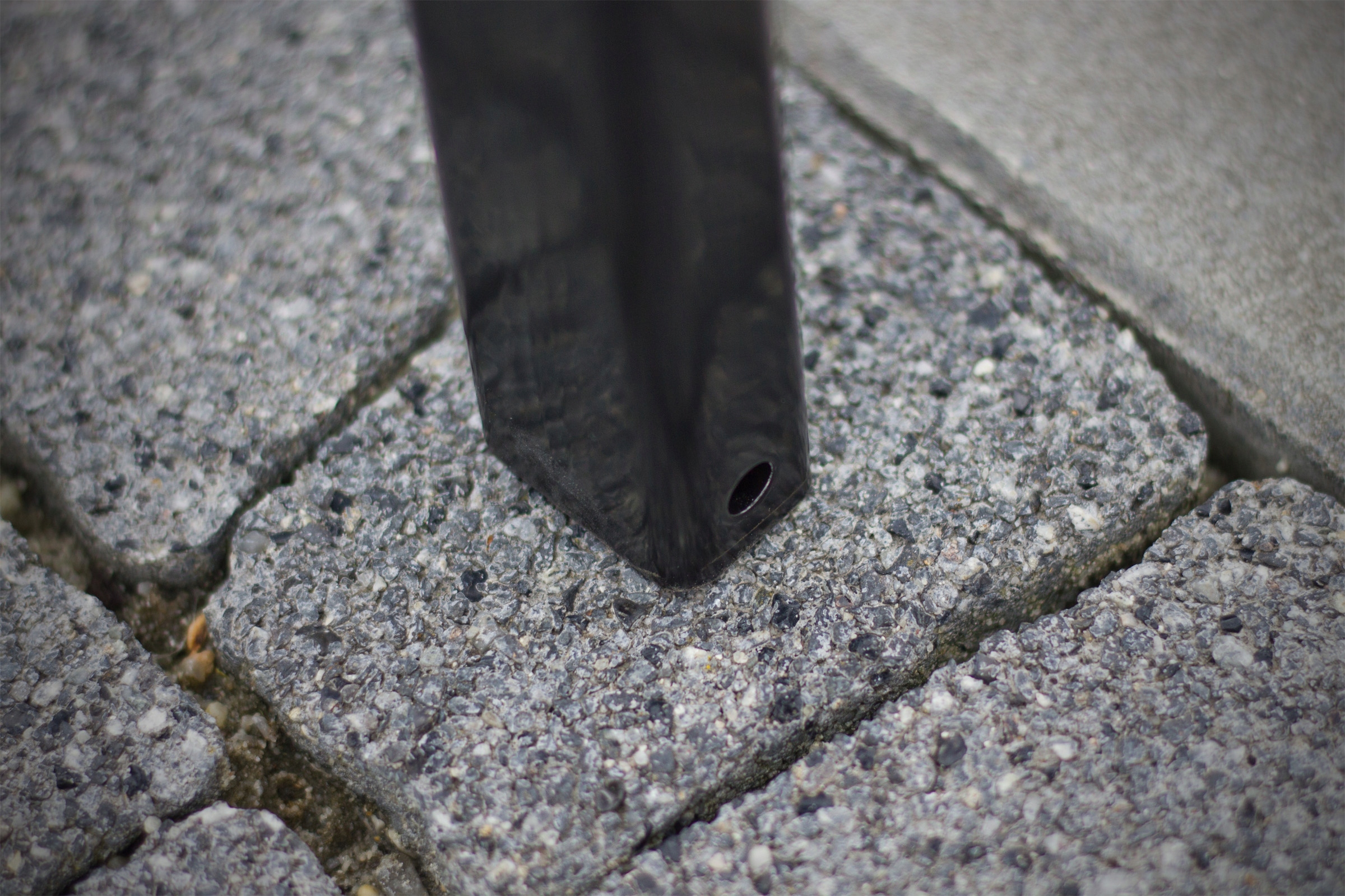 ПРИМЕЧАНИЕ: В нижней части вертикальных профилей сделаны отверстия, в которые можно вставить перекладину для предотвратить выдергивание скамейки из земли. . Стержень (или винт) в комплект скамейки не входит.