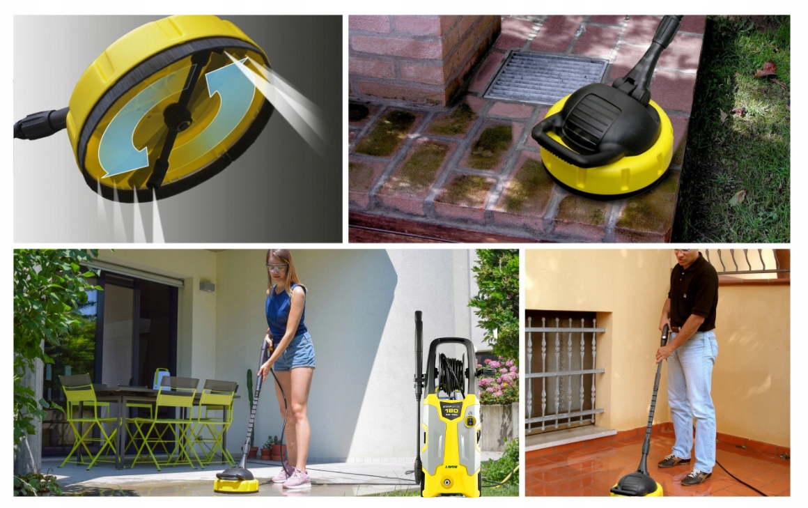 Эффективно удаляет грязь с полов, террас, булыжников, фасада и бетона. Благодаря двум интегрированным сопелам обеспечивает тщательную и даже чистку плоских поверхностей.