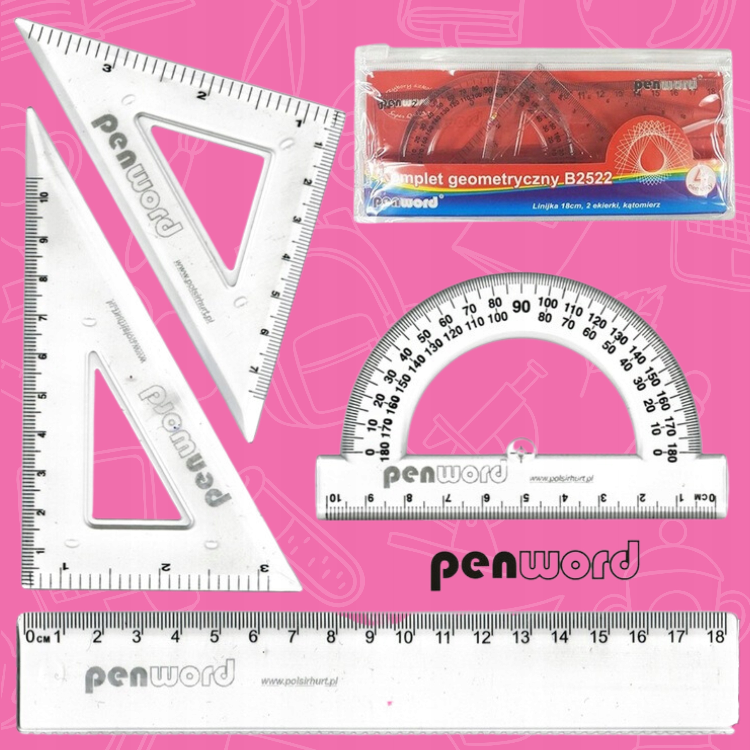 ➡️В комплект входят: линейка 18 см, угольник 60 градусов, угольник 45 градусов и угольник 180 градусов. градусный транспортир.