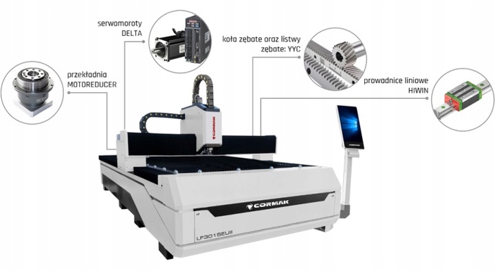 В наших лазерах используются компоненты мировых производителей. Этот факт в сочетании с тяжелой и устойчивой конструкцией позволяет добиться высокой точности резки на высоких скоростях. Качественные комплектующие также значительно продлевают срок службы устройства, который может даже превышать 10 лет. Лазеры собираются в Польше в штаб-квартире нашей компании, благодаря чему мы имеем высококвалифицированный сервис и склад запасных частей.