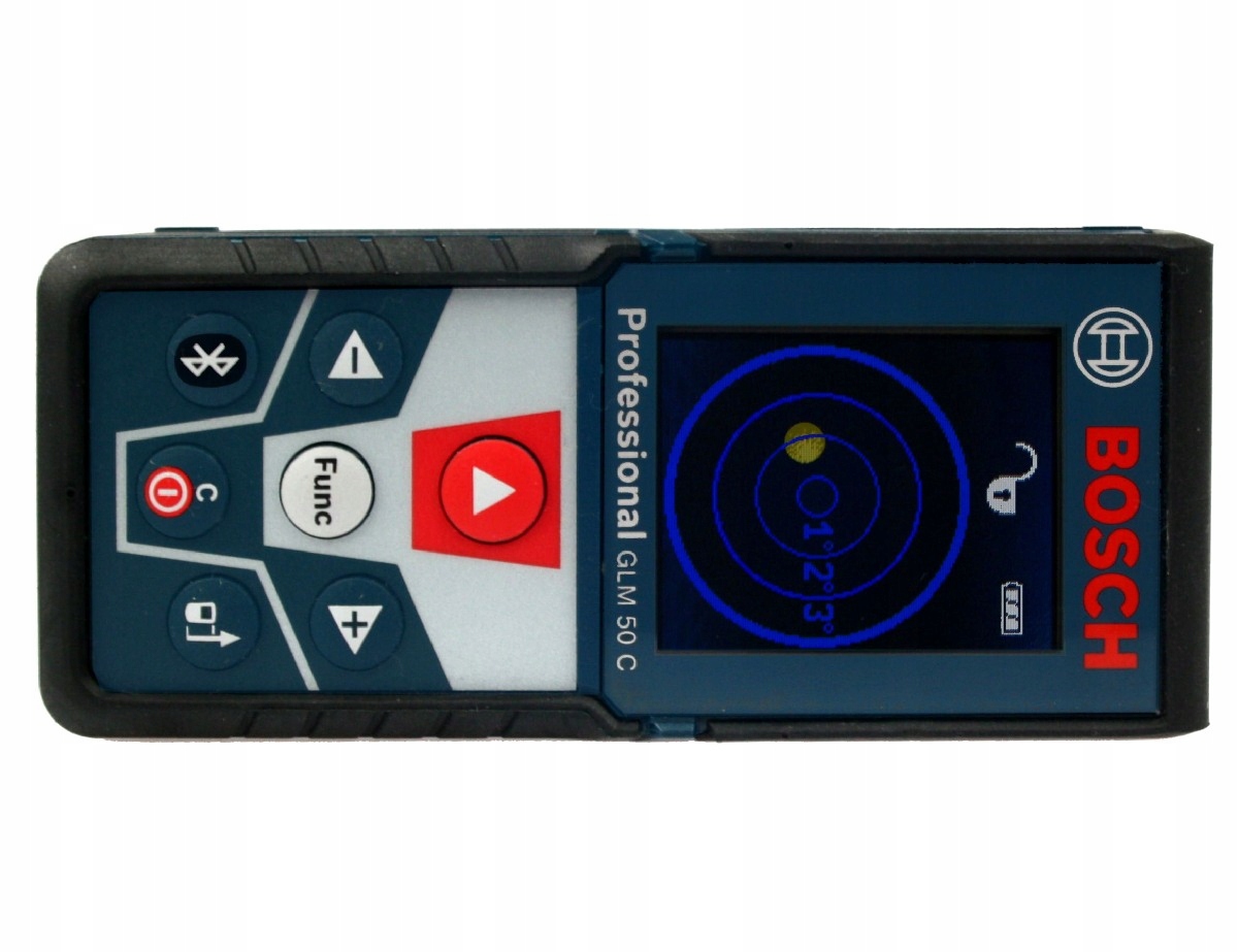 Дальномерная модель BOSCH GLM 50 C — первый лазерный дальномер на рынке, оснащенный цветным и очень читаемым ЖК-дисплеем 1,7 дюйма. Все измерения, а также выбранные функции и настройки отображаются очень наглядно, что делает использование дальномера очень простым и интуитивно понятным.