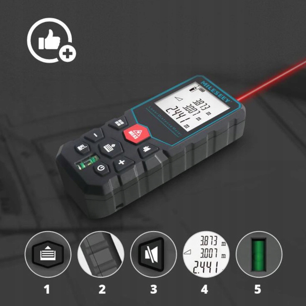 Лазерный измеритель Milesey X5 предназначен для точного определения расстояний в диапазоне от 0 до 40 м. Устройство позволяет проводить непрерывные или однократные измерения с функцией автоматической калибровки. Возможность записи до 20 измерений и функция звукового зуммера с возможностью отключения звука значительно повышают комфорт использования.