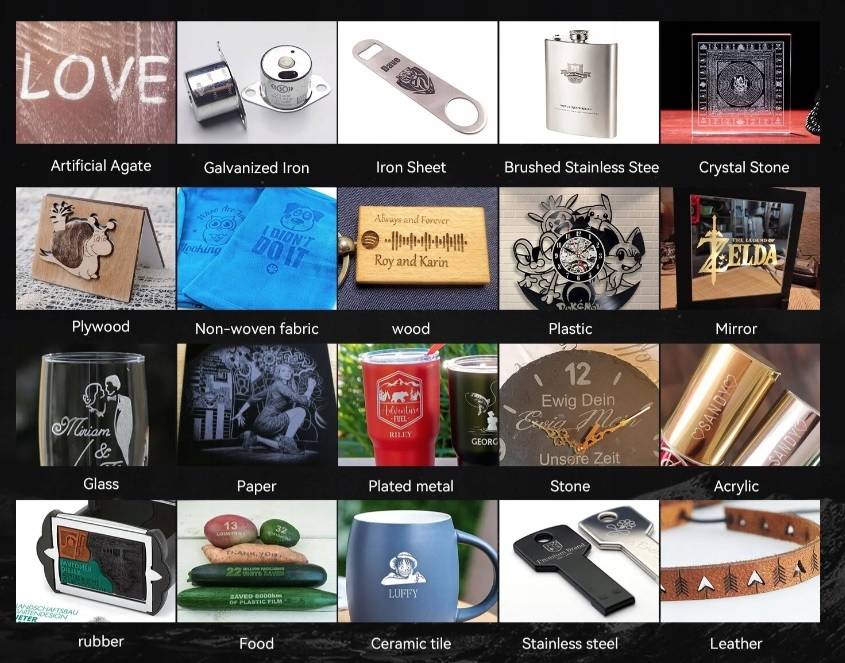 Материалы для гравировки: дерево, бамбук, картон, пластик, кожа, печатная плата, фанера, стекло, керамика, хлопчатобумажная ткань, шифер и т. д.