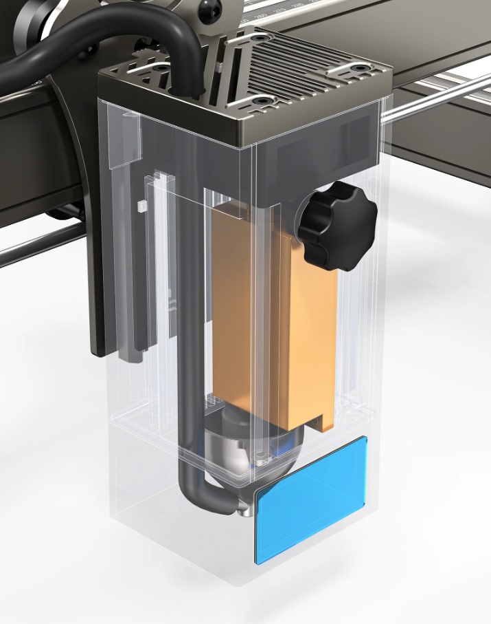 Кроме того, лазер, используемый в гравировальном станке, имеет фиксированное фокусное расстояние, мощность лазера имеет более стабильное значение чем в лазерах с переменным фокусным расстоянием. Благодаря конструкции головки температура спекания лазера достигает 1200 °C по сравнению с 650 °C у аналогичных устройств, представленных на рынке, поэтому, несмотря на кажущуюся низкую мощность, он способен эффективно резать материалы и гравировать. в высоком разрешении. Кроме того, голова оснащена встроенным гироскопом и автофокусом.