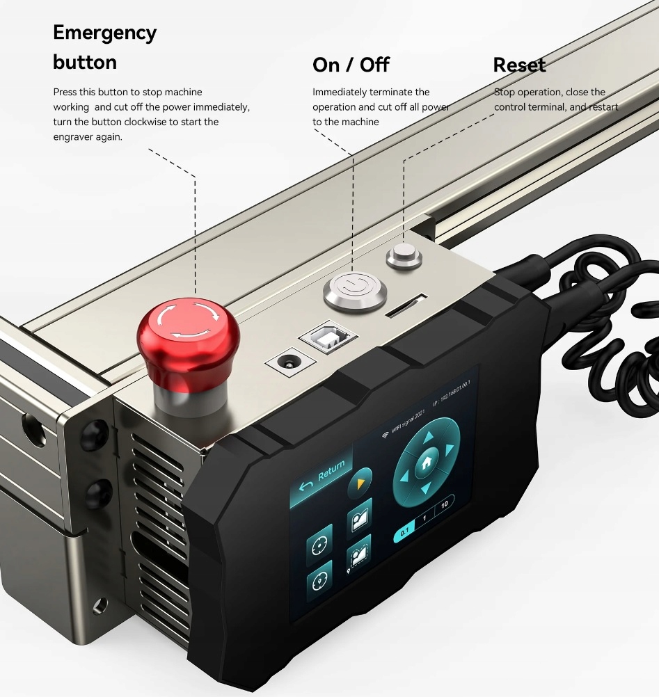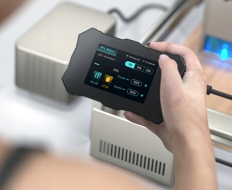 - Автономная гравировка. Гравировальный станок Atomstack S20 PRO оснащен сенсорной панелью управления, которая поддерживает автономную гравировку. Вырезать и гравировать можно без использования компьютера, задав все необходимые параметры работы. Панель управления имеет интуитивно понятный и понятный пользовательский интерфейс и эффективную операционную систему для быстрой и эффективной работы. Даже пользователи, которые никогда не пользовались лазерным станком, смогут легко им воспользоваться.