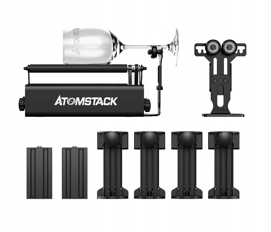 - Поворотная насадка R3 Pro - металл, цельная, размеры 260 (длина) * 90 (ширина) * 105 (высота) мм для гравировки цилиндрических форм, со встроенным шаговым двигателем и 8-ступенчатой регулировкой расстояния между роликами. Вместе с в комплекте вы также получаете 4 опоры, 2 опорные стойки и насадку для нестандартных форм