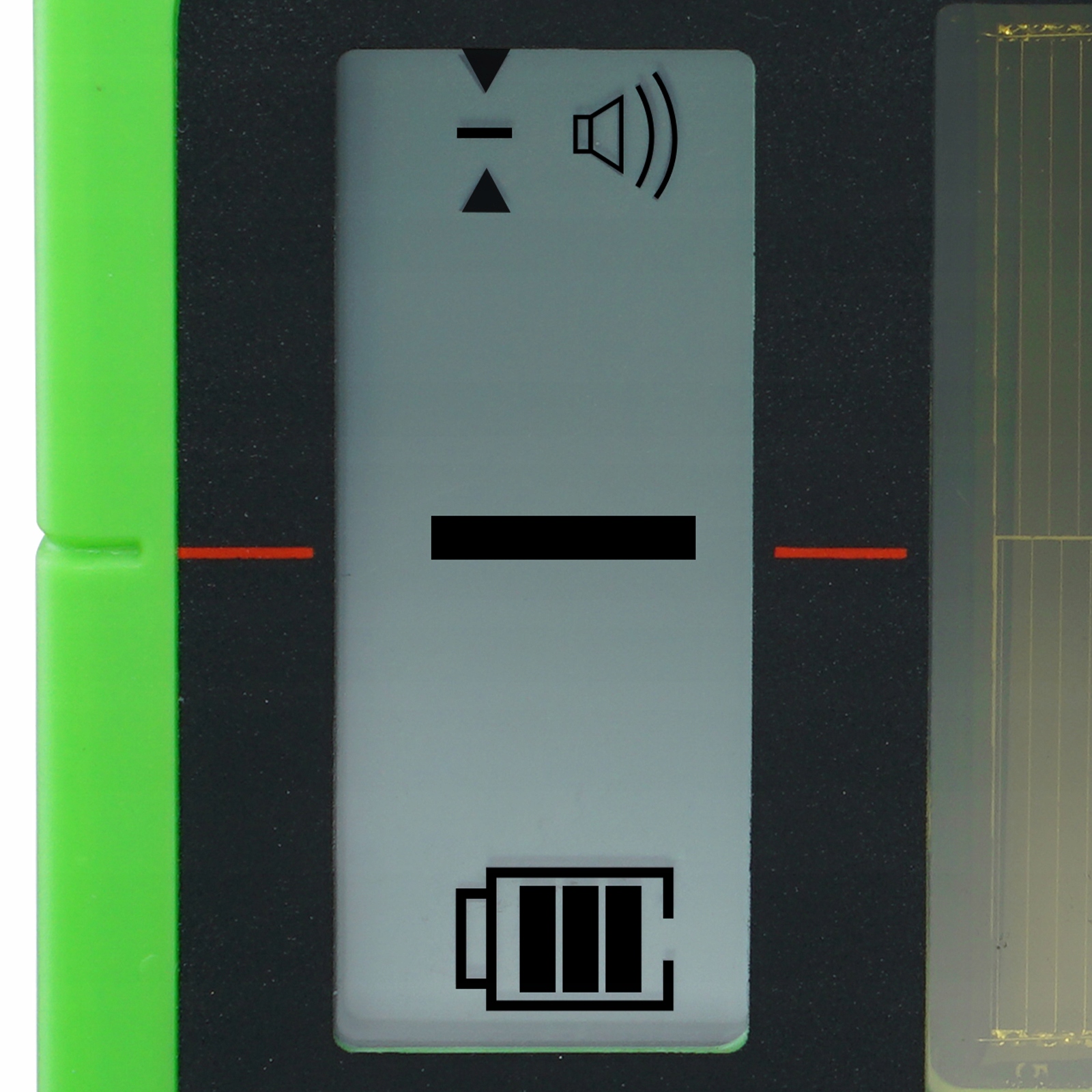 Всегда в нужном месте: лазерный приемник обеспечивает исключительную точность, получая сигналы на расстоянии до 60 метров, обеспечивая точное позиционирование на больших расстояниях. Он совместим с импульсными лазерами (красным и зеленым) и оснащен двумя ЖК-дисплеями, читаемыми с обеих сторон. Вы можете отрегулировать высоту так, чтобы линии и стрелки на ЖК-дисплее исчезли, обеспечивая горизонтальное расположение.