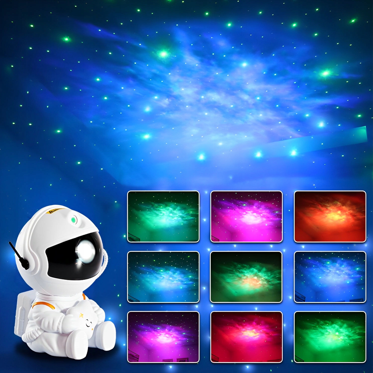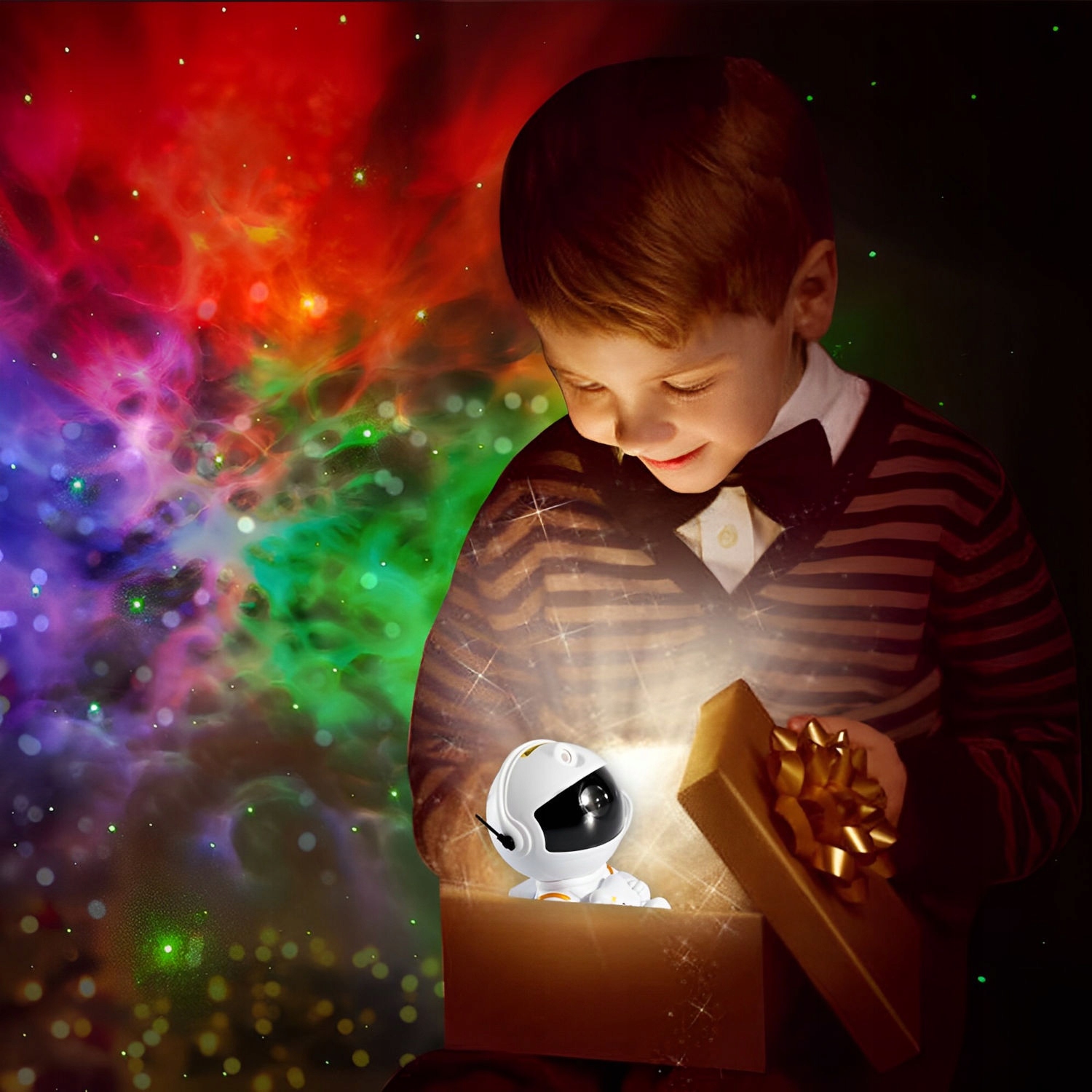 Этот маленький космонавт сидит и смотрит на звезды, показывая перед собой удивительные туманности и звезды. Ваш ребенок будет в восторге от такого веселого и неожиданного подарка! Создайте свой домашний планетарий недорого. Наш звездный проектор помогает стимулировать любопытство, воображение и творчество и раскрыть тайны звездного неба. Стоит обратить внимание на луч света. В нашем проекторе он лазерный. Благодаря этому качество проекции значительно лучше, чем у дешевых светодиодных имитаций, представленных на рынке. Еще одним преимуществом небесного проектора Mozos является простое управление устройством с помощью пульта дистанционного управления. Это позволит вам легко менять цвета и режимы проектора.