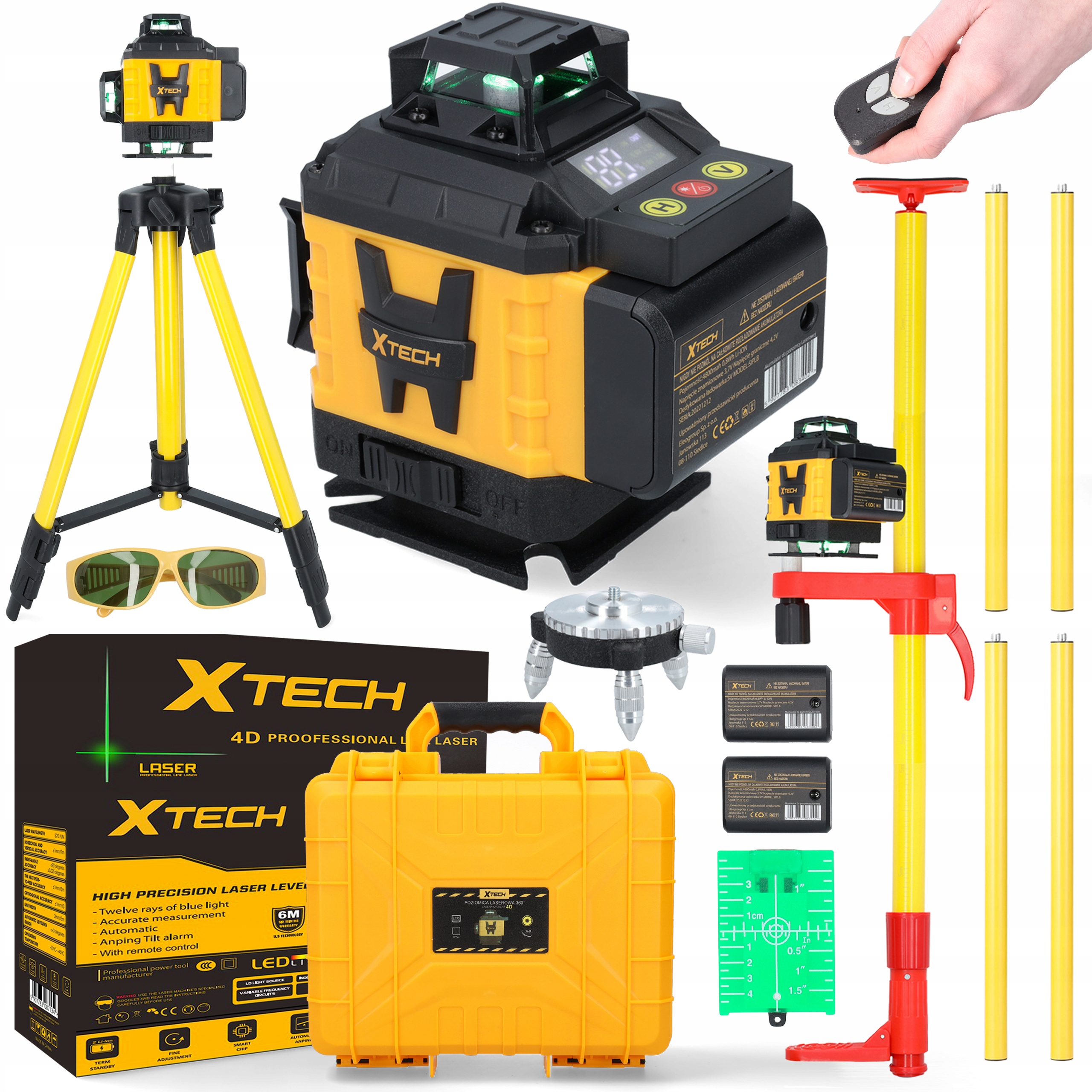 Набор лазерного уровня XTECH 360° с перекрестной линией 4D + визирная пластина + штатив XTECH + раздвижная стойка XTECH