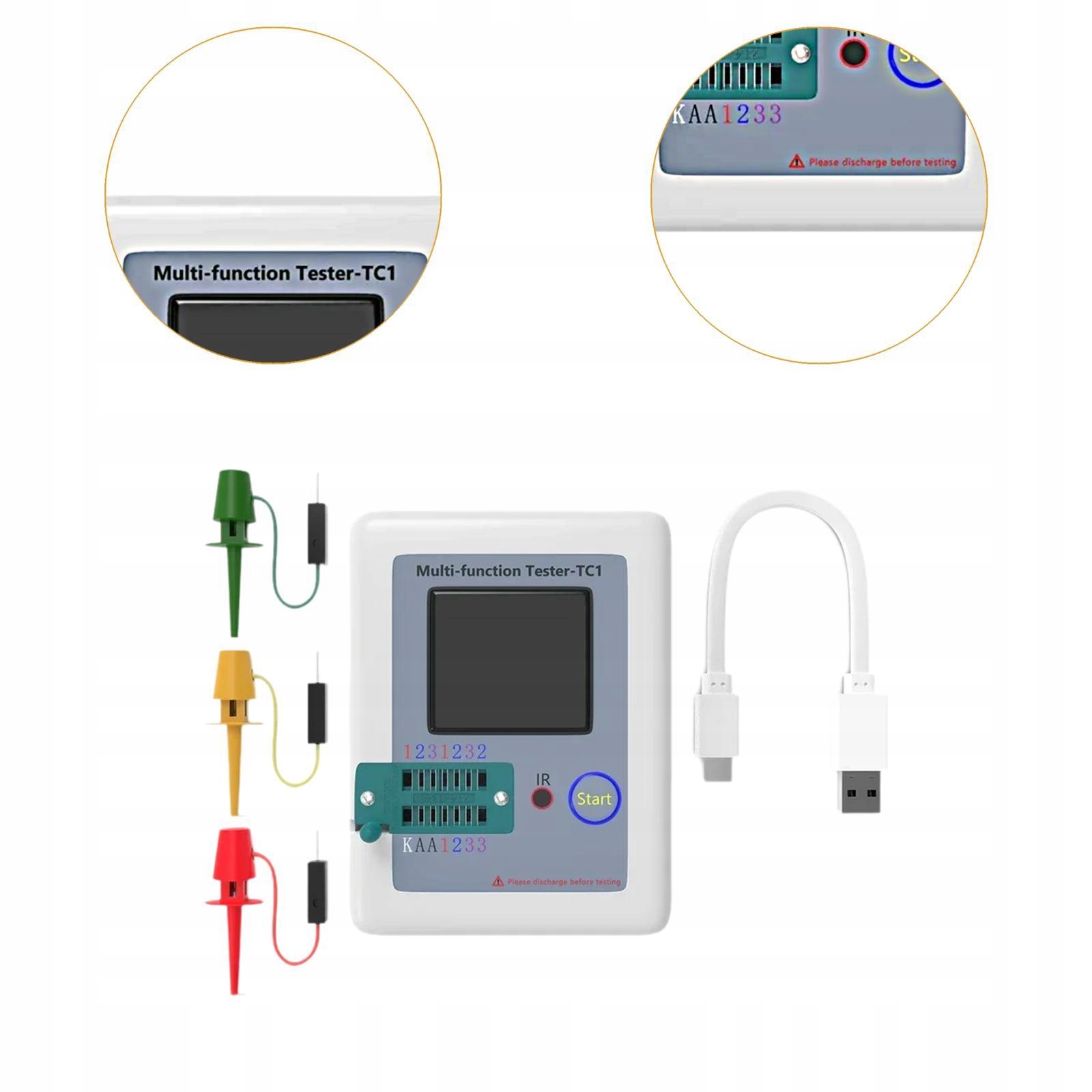 [Удобное управление]: просто поместите контакты компонента в отведенное место и поверните небольшую ручку для автоматического обнаружения, при этом результаты будут отображаться на экране с подсветкой в цвете, а не в белом цвете.