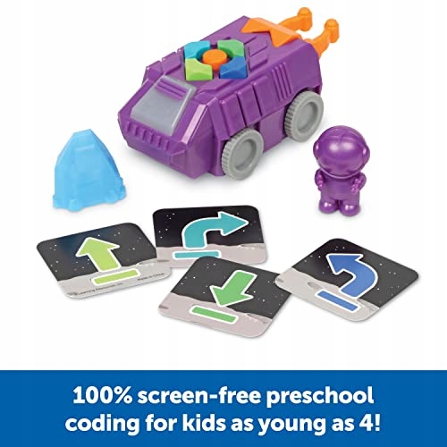 ВКЛЮЧАЕТ: вездеход для кодирования, космонавт, магнитный космический камень, 20 карточек для кодирования и полноцветное руководство с заданиями по программированию в классе. Роверу требуются 3 батарейки типа ААА (не входят в комплект).