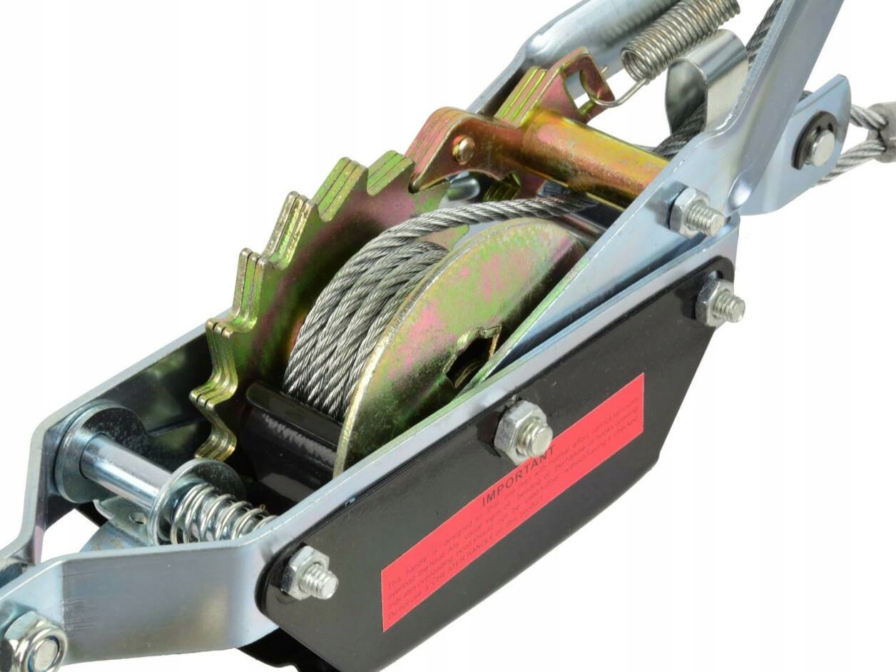 Лебедка ручная горизонтальная тросовая. Лебедка оснащена 1-режимным запорным механизмом, стальным тросом диаметром 4,5 мм и длиной 2,5 м, что в сочетании с прочными крюками создает тяговое усилие 2000 кг.