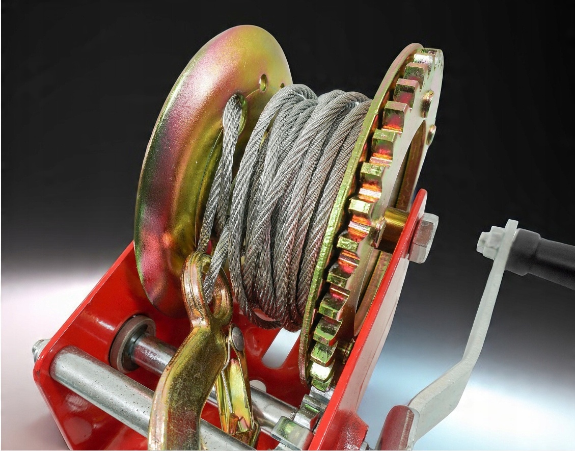 Это лебедка с прочной стальной конструкцией, предназначенная для подъема небольших лодок, гидроциклов, квадроциклов, небольших транспортных средств и т. д. Имеет легкодоступный рычаг для изменения направления движения. вращения: намотка/размотка. Лебедка изготовлена из качественных материалов, обладающих соответствующей прочностью – конструкционной стали и литого крюка с возвратной пружиной. Устройство управляется рукояткой вместе с храповым механизмом, эти свойства позволяют поднимать и опускать предметы. Его можно использовать, среди прочего, для растягивания заборных сеток, связывания, крепления и вытягивания тяжелых и крупных предметов.