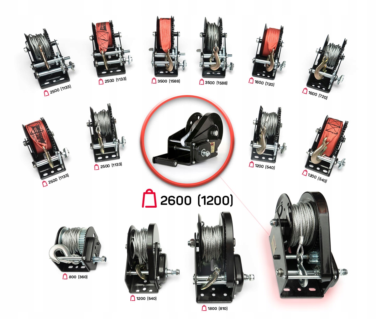 На рисунке ниже показан весь ассортимент кривошипных лебедок Dragon Winch.