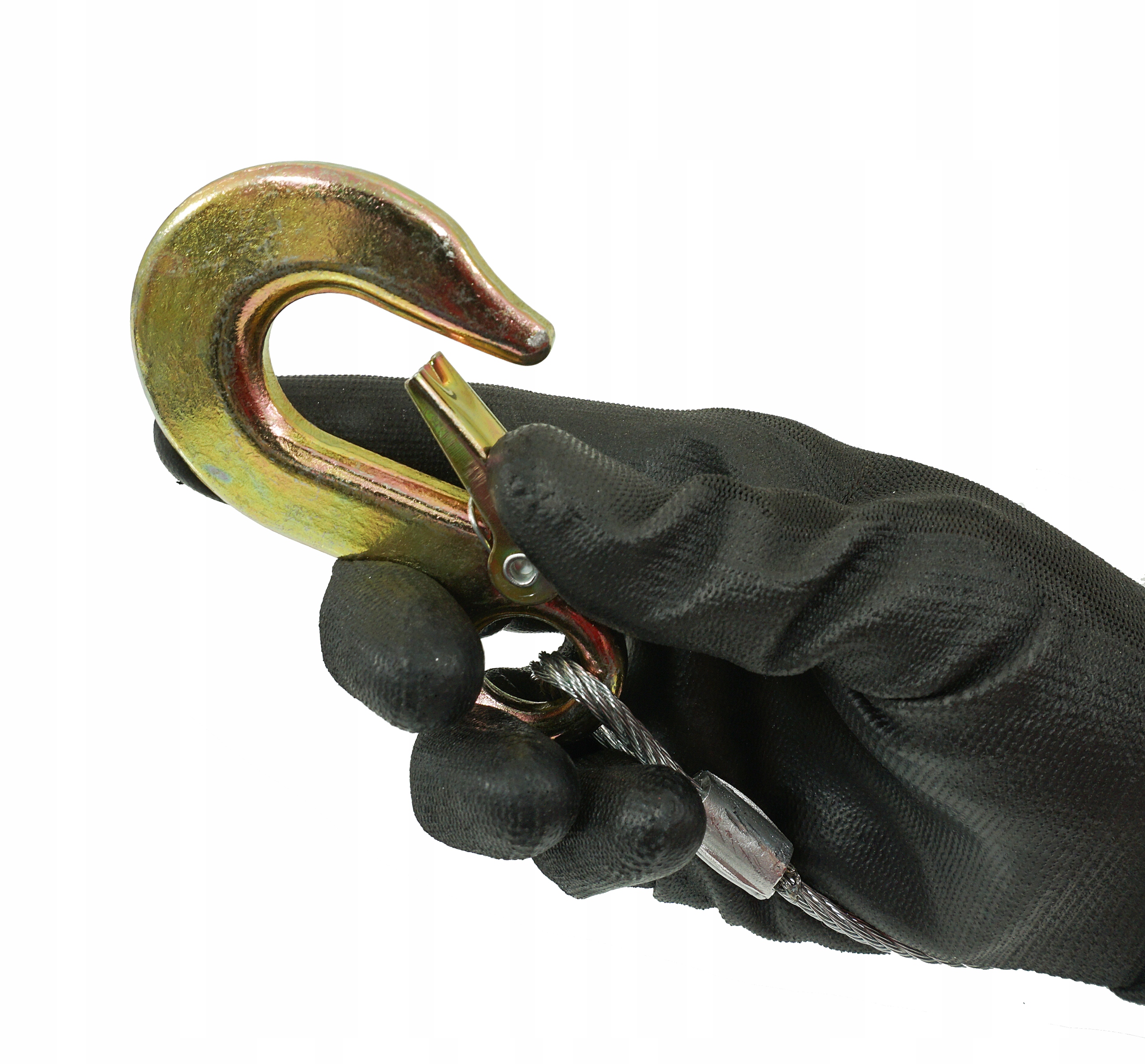 Лебедка оснащена литым крюком с пружинным замком и двусторонним храповым механизмом. Это обеспечивает надежную погрузку груза и точный подъем и опускание предметов даже в сложных условиях. Система блокировки и усиленная пружина гарантируют максимальную защиту оператора, исключая риск неконтролируемой потери веса.