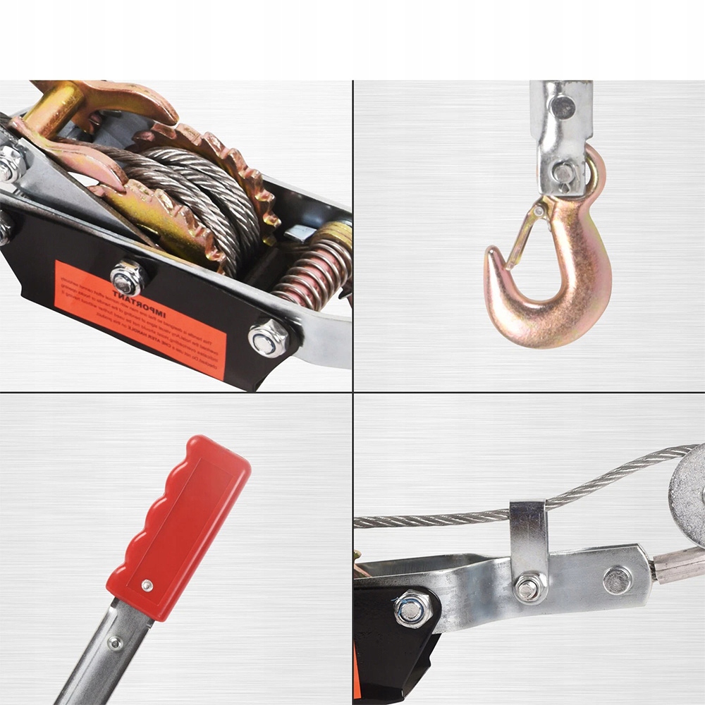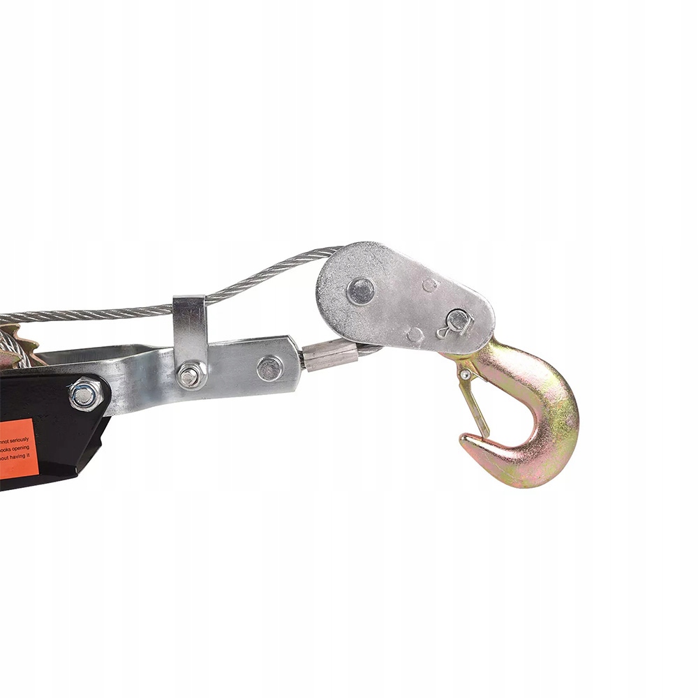 Поставляется с 2 крюками и 2-метровым стальным тросом (диаметром 6 мм), отвечающим потребностям подъема судов, грузовых прицепов и складов.