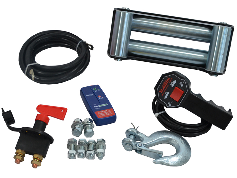 - Водонепроницаемая автомобильная лебедка с беспроводным пультом дистанционного управления радиусом действия 30 м и проводным пультом дистанционного управления радиусом действия 3,7 м.