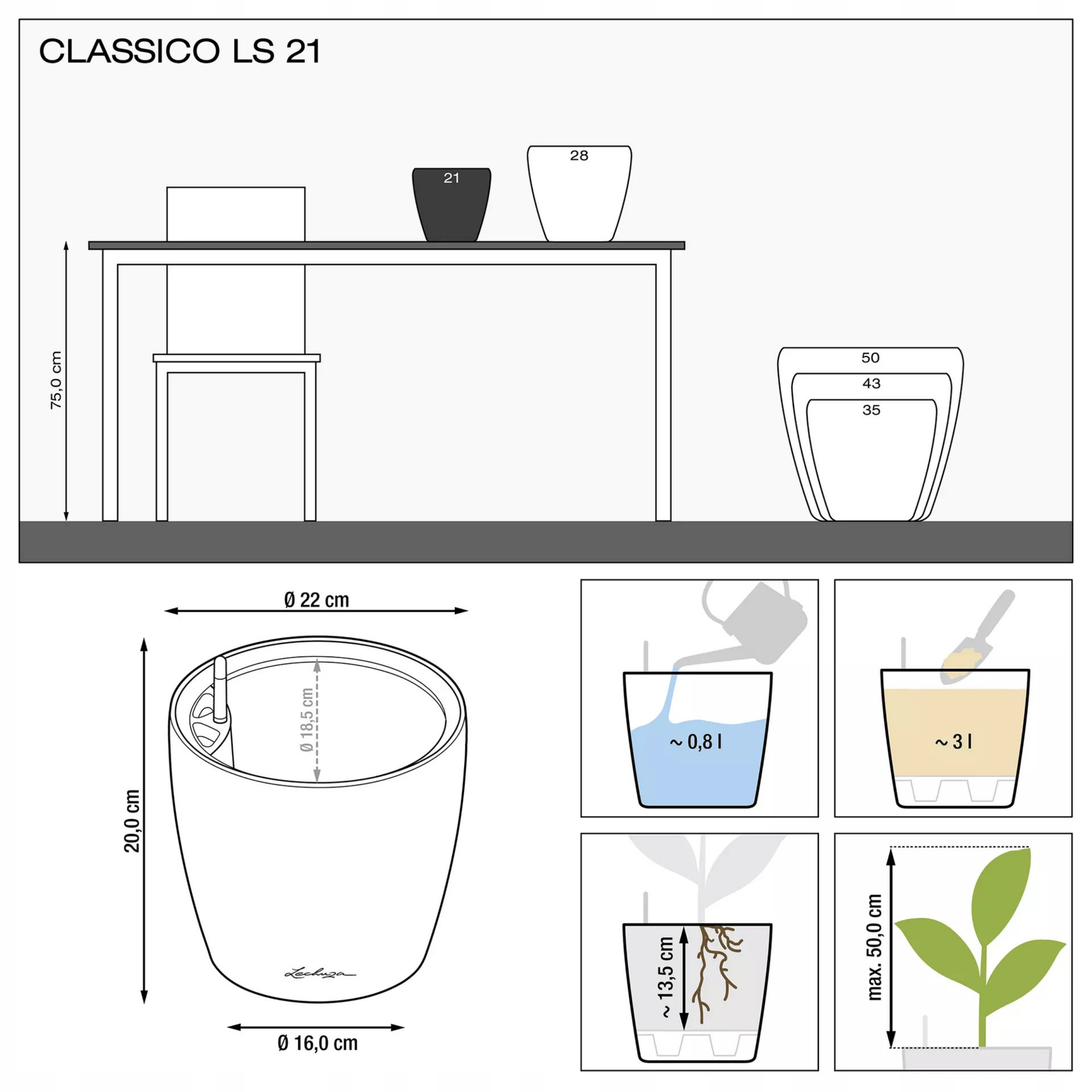 Как и другие горшки Classico, это оснащена надежной системой самостоятельной работы Lechuza , которая обеспечивает растение оптимальное количество воды, именно то, что ему нужно