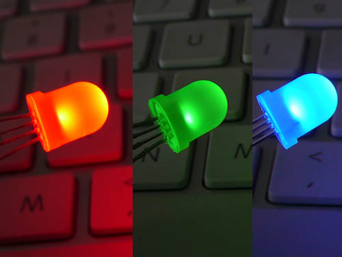 Набор светодиодов RGB, которые светятся разными цветами в зависимости от настроек. Диаметр 5мм, общий анод. Светодиоды в диффузионном варианте (матовая «молочная» непрозрачная линза), благодаря чему светят меньше пятнами и под большим углом.