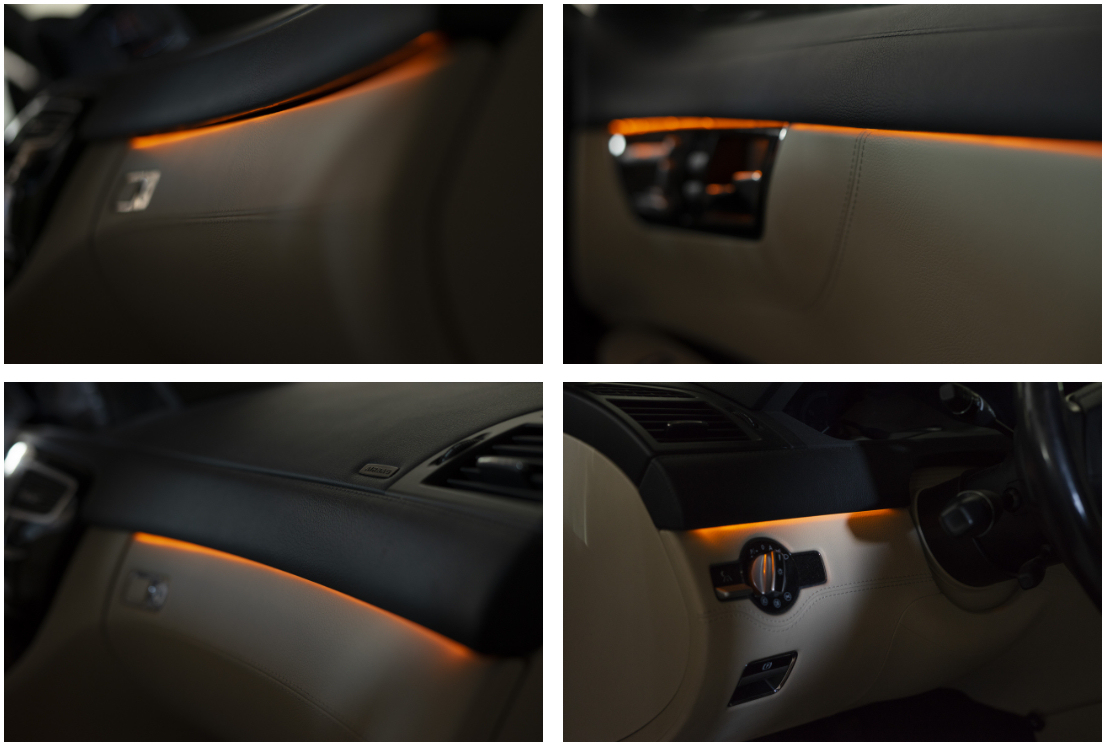 Оптическое волокно Ambient LED, благодаря своим небольшим размерам (толщина всего - 2 мм в самом толстом месте - 0,61 мм в самом тонком) и отличной гибкости, может быть установлено в любых щелях приборной панели, в дверях автомобиля, под сиденья, мы ограничены только нашим воображением.