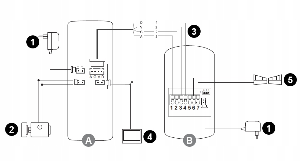 Унифон громкой связи позволяет управлять двумя входами путем непосредственного управления электромагнитным замком и приводом въездных ворот.