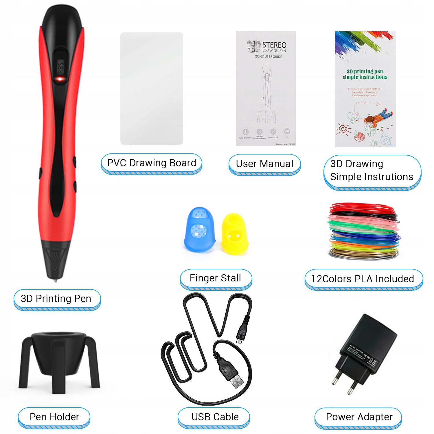 LED Długopis 3D drukujący z 120ft WKŁADY FILAMENT PLA