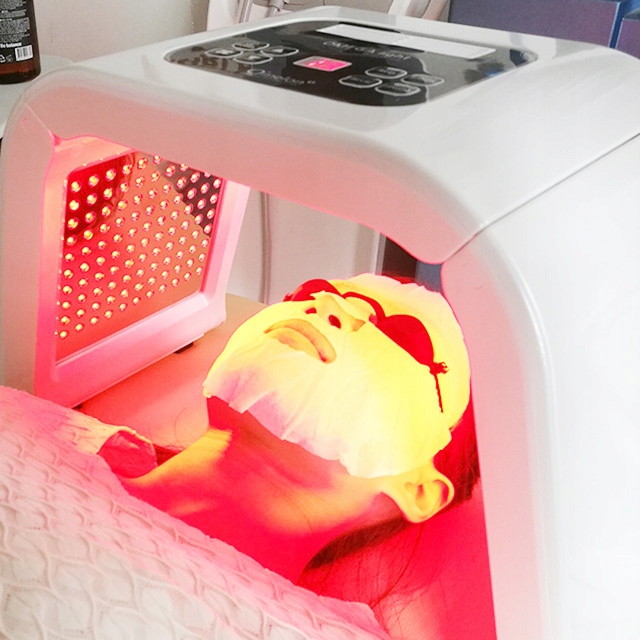 Красный цвет ( 650–730 нм): стимулирует кожу к увеличению выработки коллагена и эластина, что помогает уменьшить морщины и повысить упругость кожи. Обладает противовоспалительными свойствами и уменьшает покраснения.