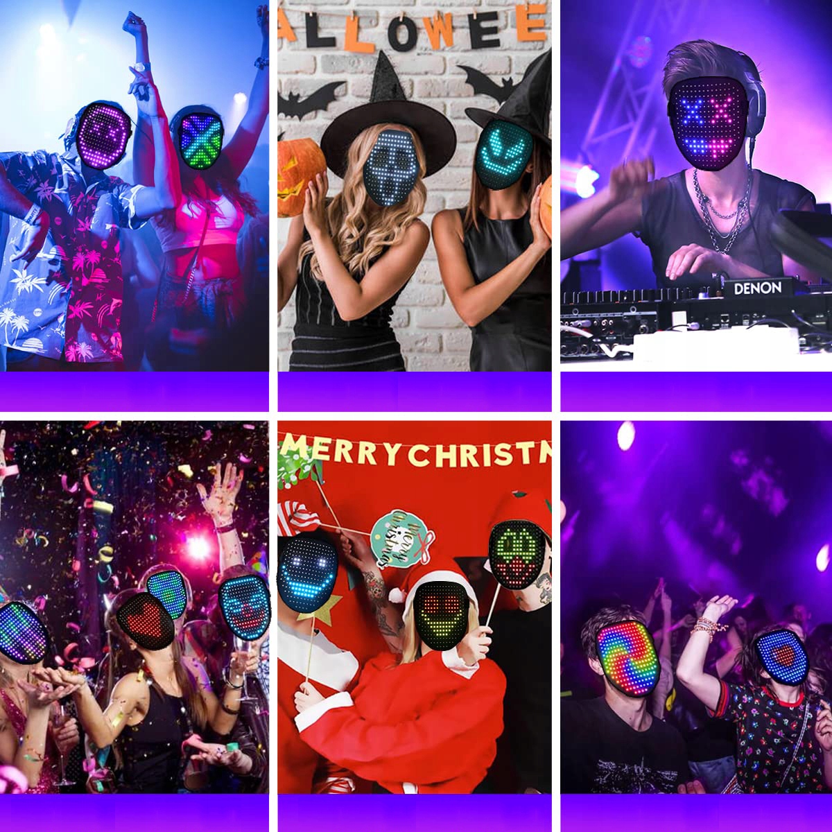 Светодиодные маски для взрослых и детей имеют дизайн полностью светодиодной маски с регулируемым ремешком, который очень подходит для косплея, маскарада, дня рождения, вечеринки, Хэллоуина, Рождества, карнавала, фестиваля электронной музыки и других случаев. Маскарадные маски с подсветкой – очень неожиданный подарок. Это идеальный, удивительный и самый крутой подарок на сегодняшний день, даже ваши любимые маскарадные костюмы и игрушки для мужчин.