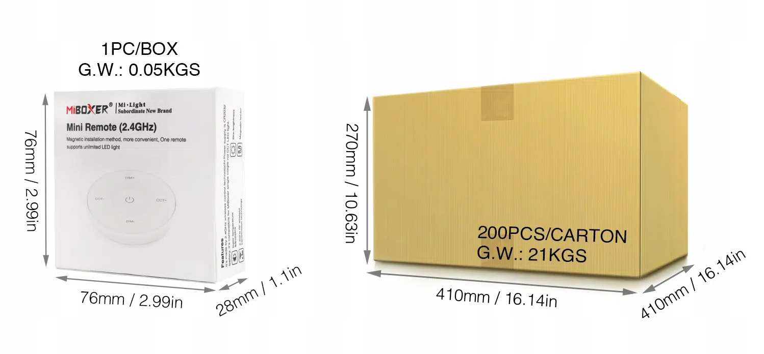 Пульт дистанционного управления с вращающимся колесом, использующий полосу частот 2,4 ГГц, отличается низким энергопотреблением, большой дальностью передачи, надежной защитой от помех и высокой скоростью связи. Просто поверните ручку на пульте дистанционного управления, чтобы насладиться комфортными световыми эффектами. Он компактен, прост в использовании, крепится на магнитах и надежно крепится. Он может управлять выбранными лампами Mi-Light / MiBoxer 2.4G и регулировать цветовую температуру и яркость света.