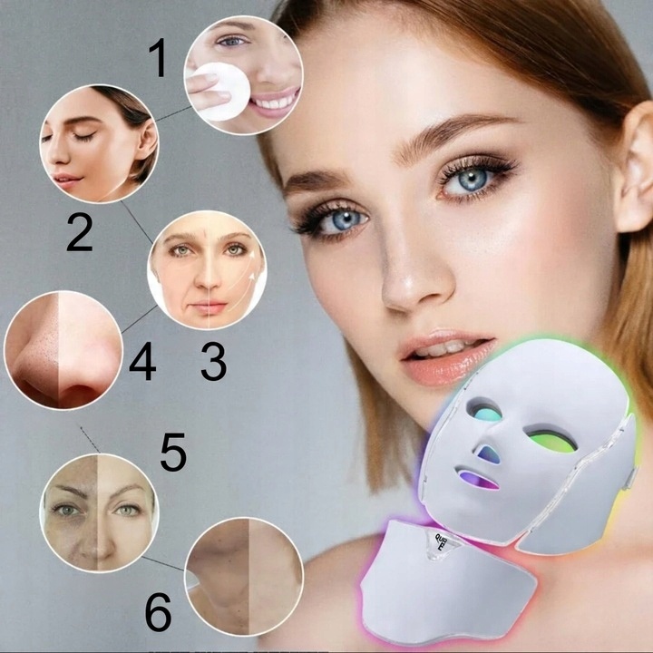 LED PHOTON КОСМЕТИЧНА МАСКА ДЛЯ ОБЛИЧЧЯ ТА ШИЇ 7 КОЛЬОРІВ ПІДТЯЖКА І ПІДТЯЖКА