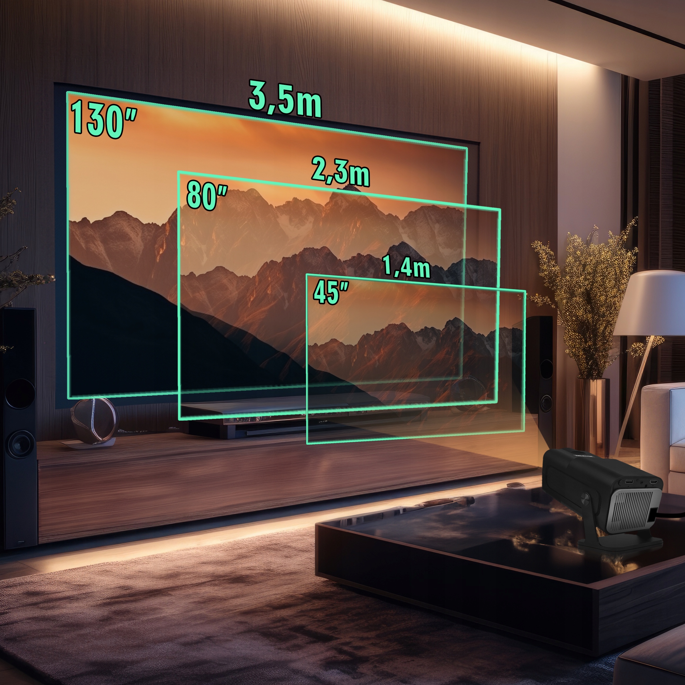 - 3,5 м — 130 дюймов