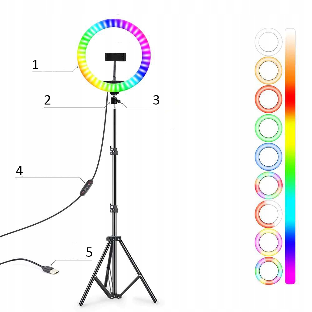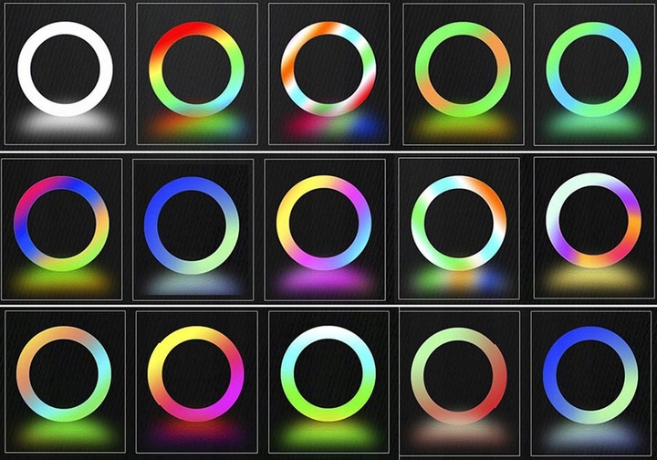 Светодиодная кольцевая лампа - это продукт со многими приложениями b>. Он работает как во время сессий , при снятии селфи, при записи фильмов и подкастов или при создании макияжа . Освещение в спектре RGB дает вам бесконечные возможности творческого выражения. Дизайн кольца лампы позволяет ровному лицевому освещению , поэтому продукт будет работать, особенно в красоте