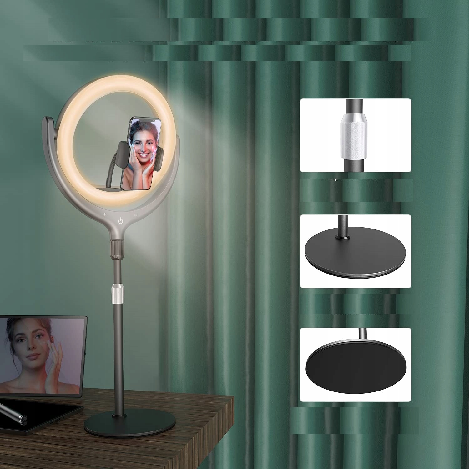 стереоскопическое освещение с 10-дюймовой апертурой- эта кольцевая лампа на столе имеет стереоскопическое освещение с 10-дюймовой апертурой, которую можно гибко вращать, чтобы найти точный угол наполнения. Лампы внутри могут улучшить яркость всех направлений. Кроме того, отличный эффект красоты и натуральный цвет воспроизведения могут значительно улучшить качество ваших фильмов и фотографий.